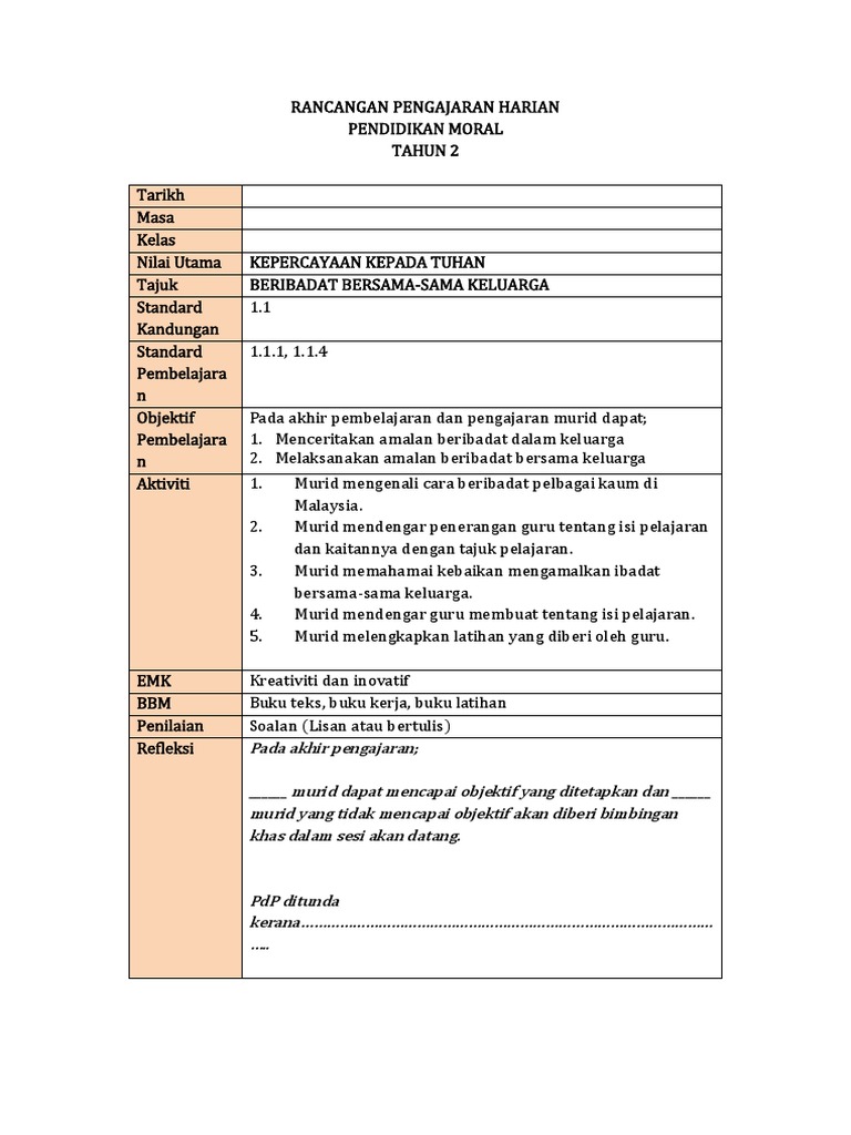 Contoh Rph Pendidikan Moral Thn 1 Pdf